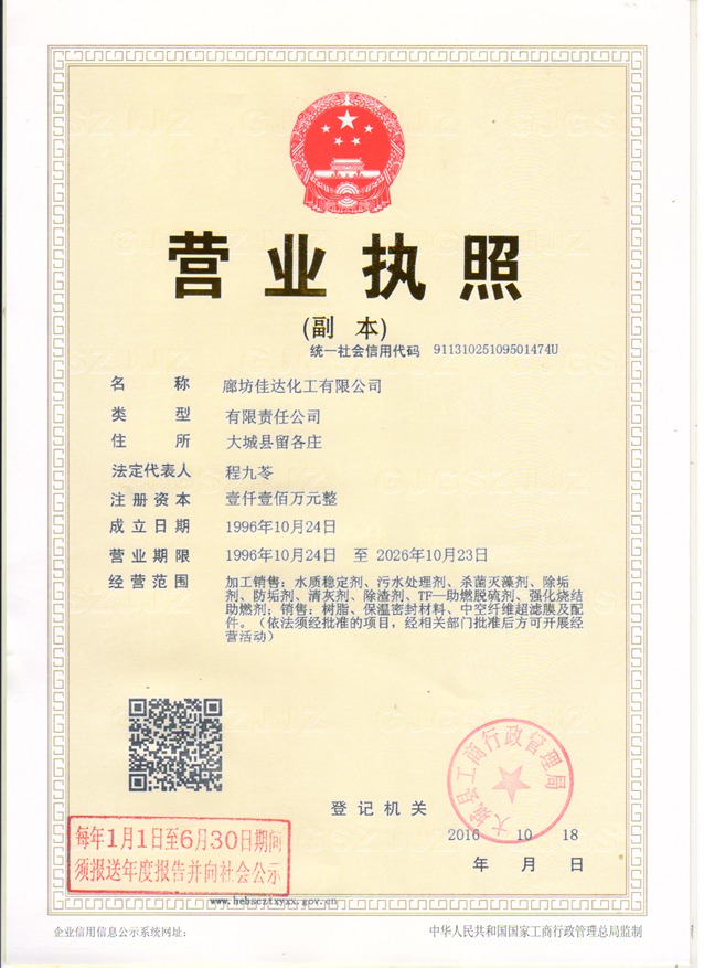 廊坊佳達化工有限公司,創建于1984年,位于京津腹地“小溫州”之稱的廊坊市留各莊化工園區,先后與中科院高能所聯營,并與國家煤炭部、清華大學、中石化研究院、國家電力熱工研究院等科研部門進行技術合作,開發出適合于電力、石油、冶金、冶煉、化工等行業用的節能環保系列產品。公司下設聯營鍋爐清洗劑廠、鋼鐵助劑車間、水質穩定劑車間、離子交換樹脂車間,年生產能力達十萬噸,是國內生產鍋爐用化工產品、水處理藥劑、鋼鐵冶煉助劑等環保節能系列產品專業生產廠家。本公司沒有大型化驗室和實驗設備,可根據用戶的要求篩選配方,以保證產品的有效性。 本公司設備工藝先進,技術力量雄厚,配方科學獨特,測試手段完備,在近三十年的生產過程中,企業實力不斷擴大,信譽度不斷提高。1...詳細>>